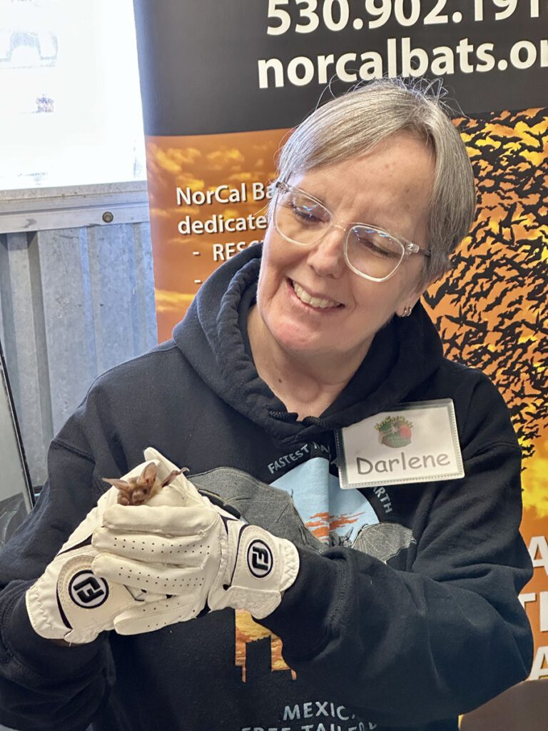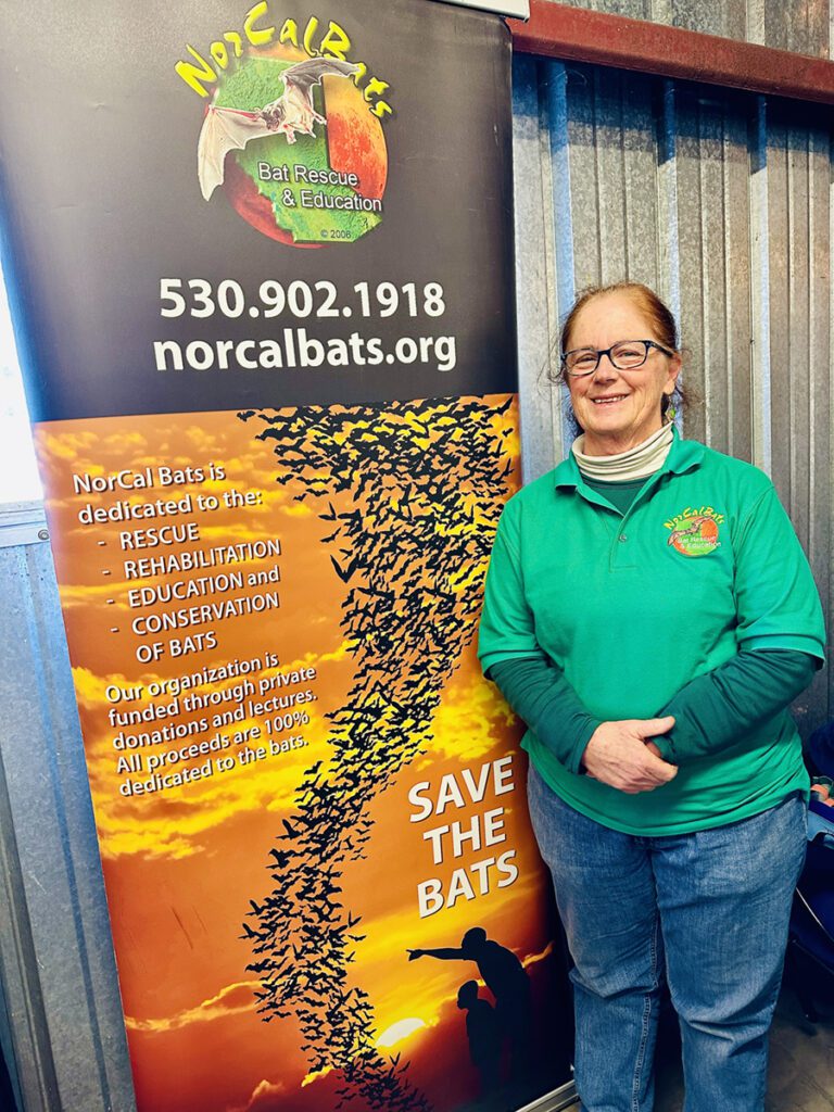 Corky and NorCal Bats are ready to help when someone encounters a bat. “A lot of people call me and I’m happy to walk them through what’s normal and what’s not.” And since bats have only one baby per year, populations don’t recover quickly from hardship (if they recover at all). That’s why it’s important to reach out if one looks like it needs help. Visit norcalbats.org or 530-902-1918 for more information or to report a sick bat.