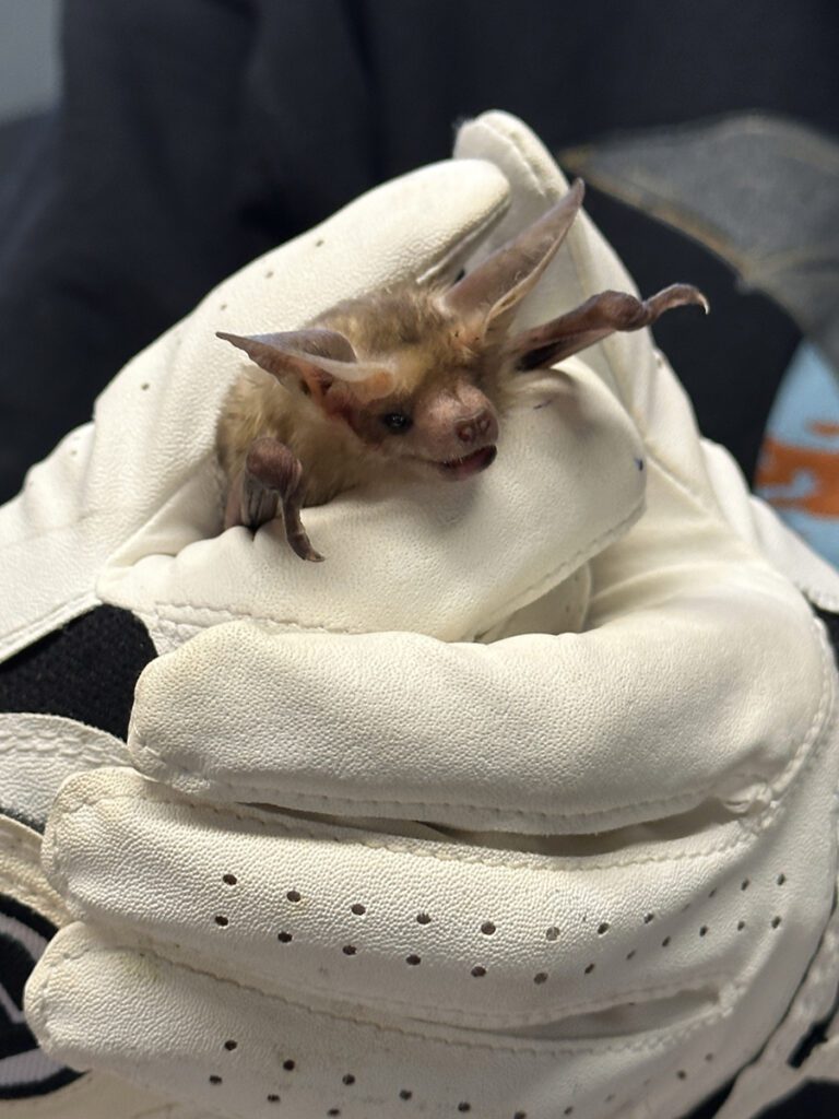 3) Once the bat is caught, call your local wildlife rescue. “Every county is going to have a rescue. Though not every county does bat rescues – they can refer you to a bat rescue.”