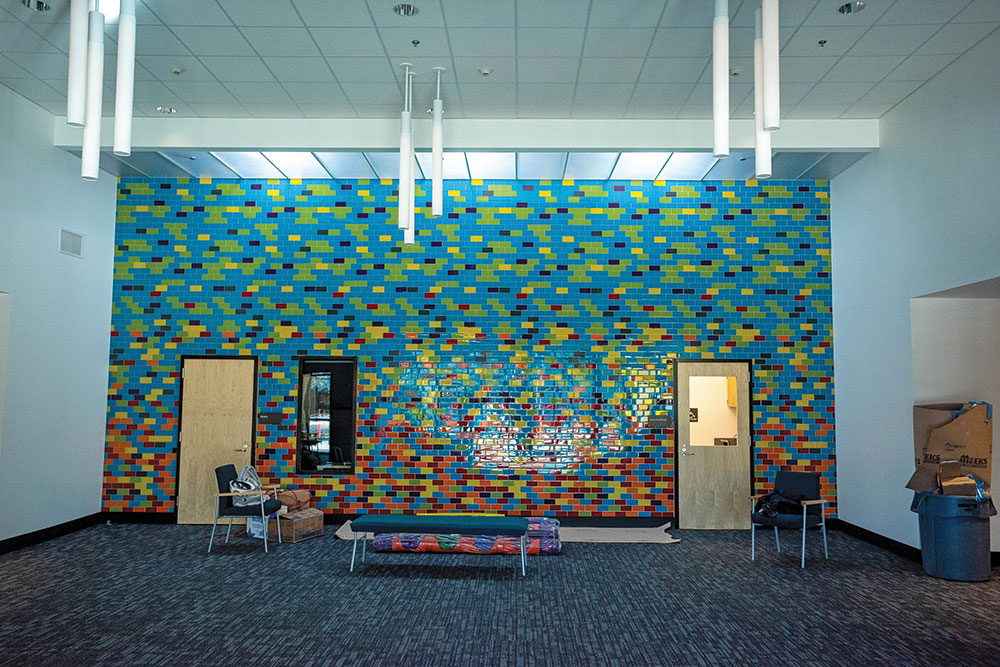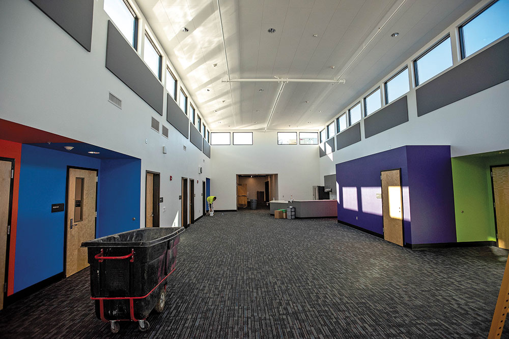 The building is large, with bright colors and huge windows that let in lots of natural light. There is also a common area, and the classrooms have sound buffers incorporated into the ceiling. There is an accessible playground made up of gross motor and sensory play equipment. The new building includes rooms specifically for assessments and therapy rooms for occupational and speech therapy. Even the layout of the staff and administrative offices allows for better collaboration. “There was intention behind how it was designed,” Sauberan says.