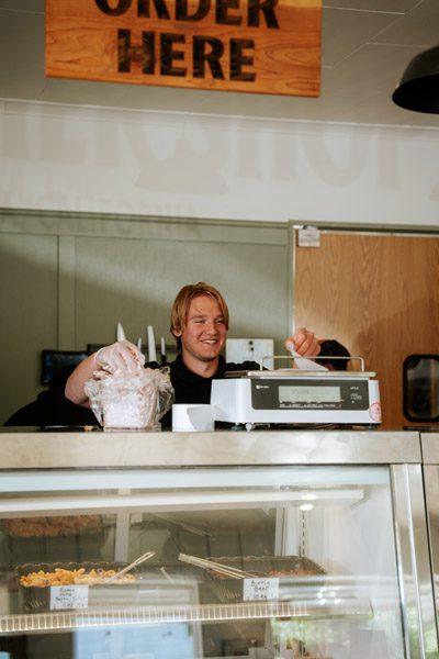 Farmhouse director Jacob Smith strives to create an atmosphere in which employees feel part of a team and their opinions are valued. Ranch graduates can choose to learn to be a barista, to bake bread or to make desserts in the bakery or to clerk at the butcher shop deli. In addition to job skills, they learn to show up on time to work and gain social skills as they team up with co-workers and interface with the public. As Abby says, “If they can learn a good work ethic they can get a job anywhere.” Jacob says his goal is to get the employees Serv-Safe certified. But with over 16 years of culinary experience, Jacob says the most rewarding part of his job is “when the communication happens. When workers are working as a team.”